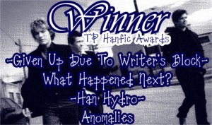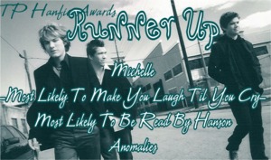 Thanks to everyone who voted for me at the TP Hanfic Awards! *does a little dance*. Because of you I won the following: